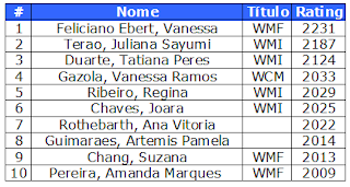 Eis atualizados o Top 10 Brasileiro rating FIDE masculinos e femininos!